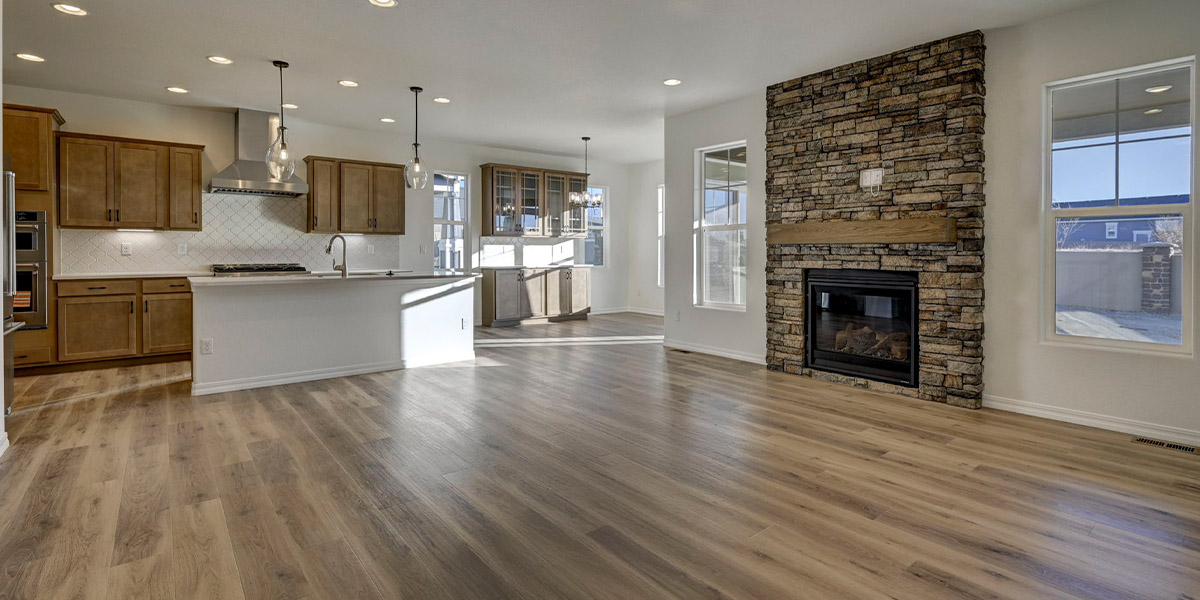 The openness of the great room, kitchen and dining nook provide a spacious gathering place. The gas fireplace in the great room with floor to ceiling stacked stone and a stained box mantel creates an …